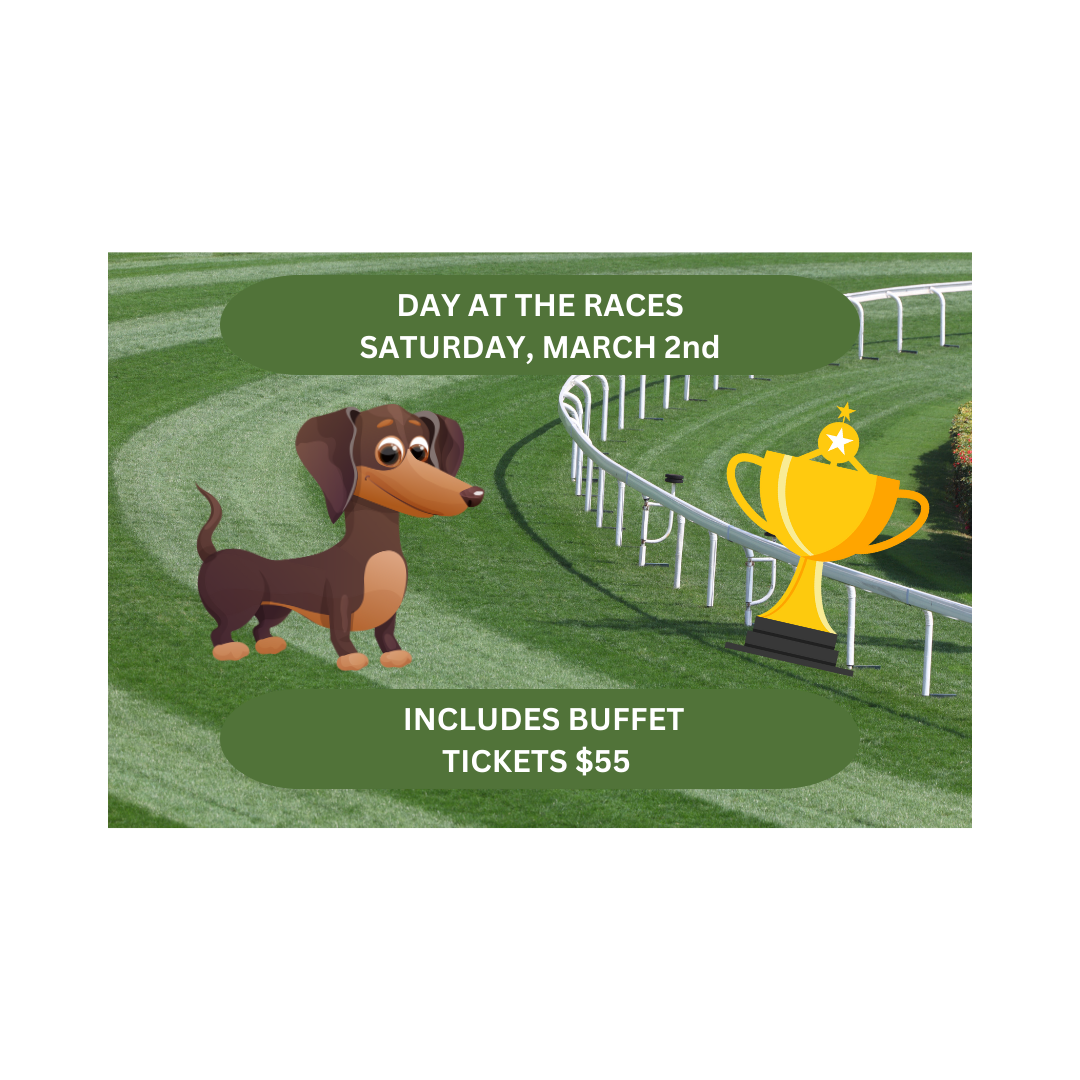 Buffet opens at noon, first race at 12:45pm. Buy your tickets now. Only on sale through Monday, Feb 26 at noon. TICKET SALES NOW CLOSED. *Details and Tickets Here*